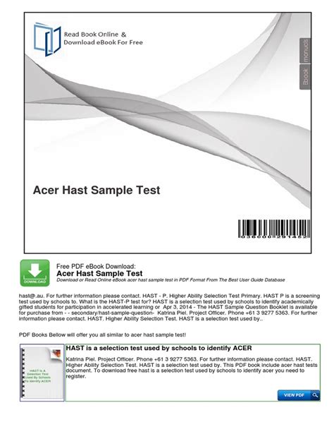 Read Online acer-hast-sample-test Ebook PDF online is a convenient and frugal way to read acer-hast-sample-test Ebook you love right from the comfort of your own home. Yes, there sites where you can get PDF "for free" but the ones listed below are clean from viruses and completely legal to use.