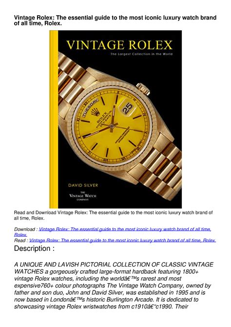 Read The Rolex Report Pdf Ebook PDF online is a convenient and frugal way to read The Rolex Report Pdf Ebook you love right from the comfort of your own home. Yes, there sites where you can get PDF "for free" but the ones listed below are clean from viruses and completely legal to use.